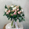 Букет пионов и кустовых роз на 8 марта