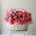 51 разноцветная роза в корзине