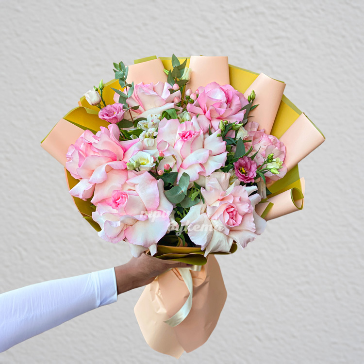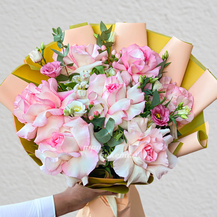 Букет эустом и роз Белла Вита на 8 марта