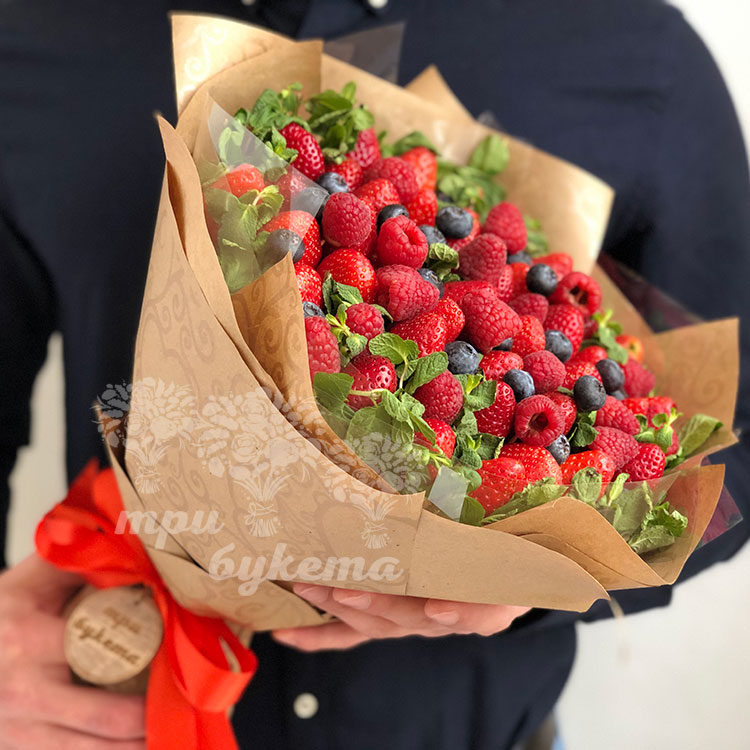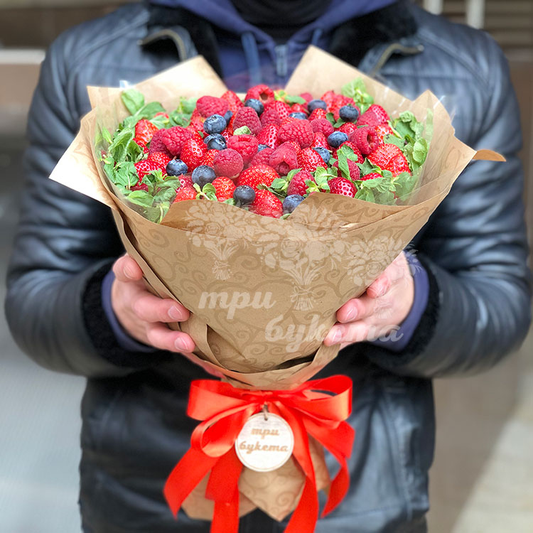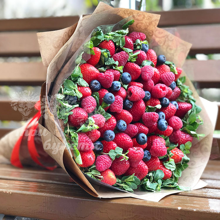 Букет из клубники, малины и черники