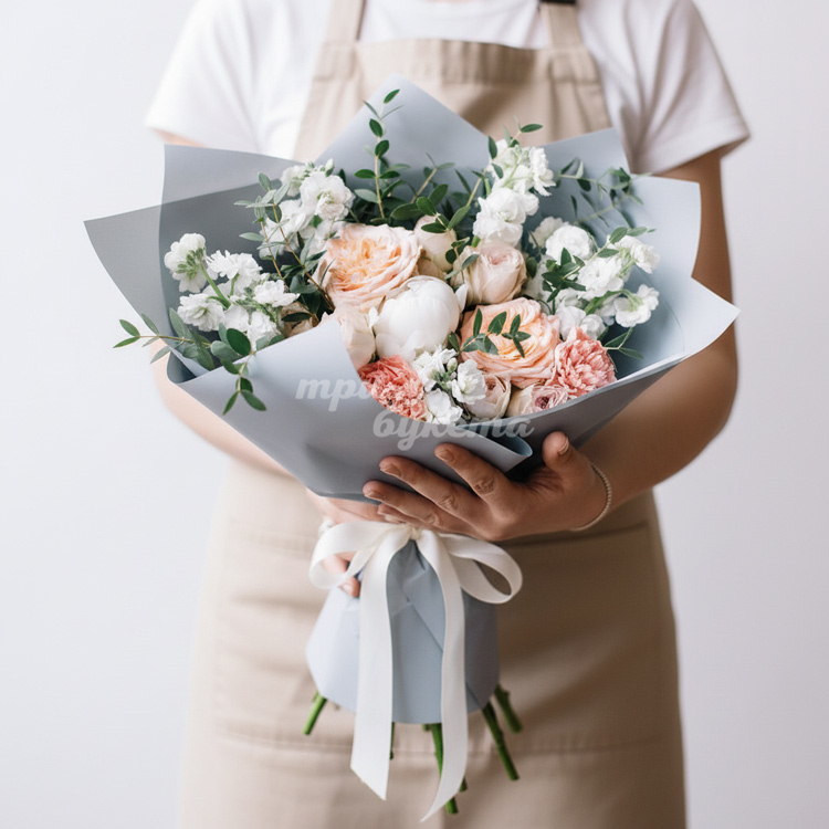 Букет из маттиол и пионов