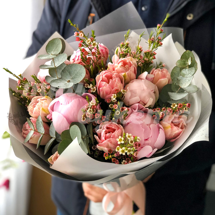 Букет из пионов и тюльпанов
