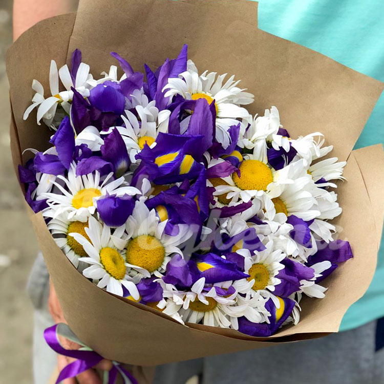 Букет из ромашек и ирисов