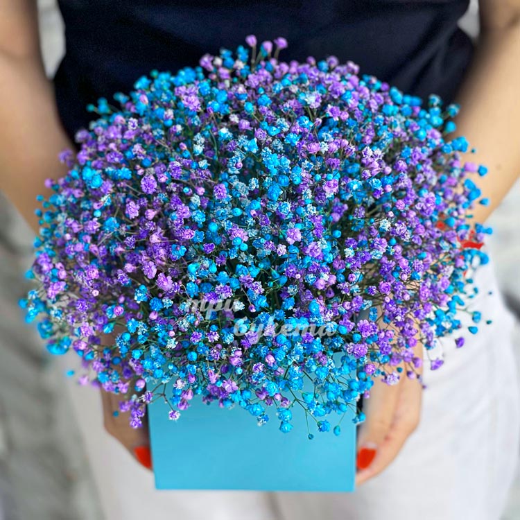 Голубая композиция из гипсофилы