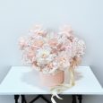 Кашпо бордовых, розовых и оранжевых роз