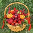 Клубника и цветы в шляпной коробке