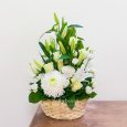 Корзина кремовых кустовых роз с гипсофилой