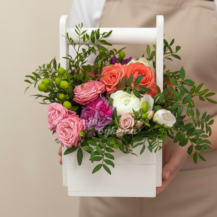 Оранжевые розы в ящичке
