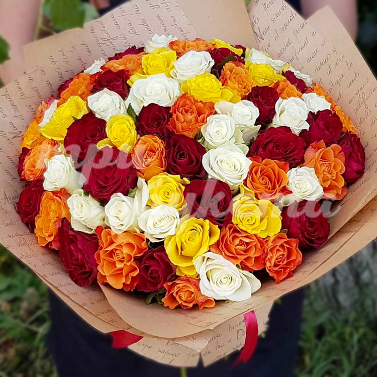 - Кенийские разноцветные розы, 67 шт.