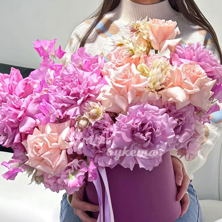 Сиреневые французские розы в коробке